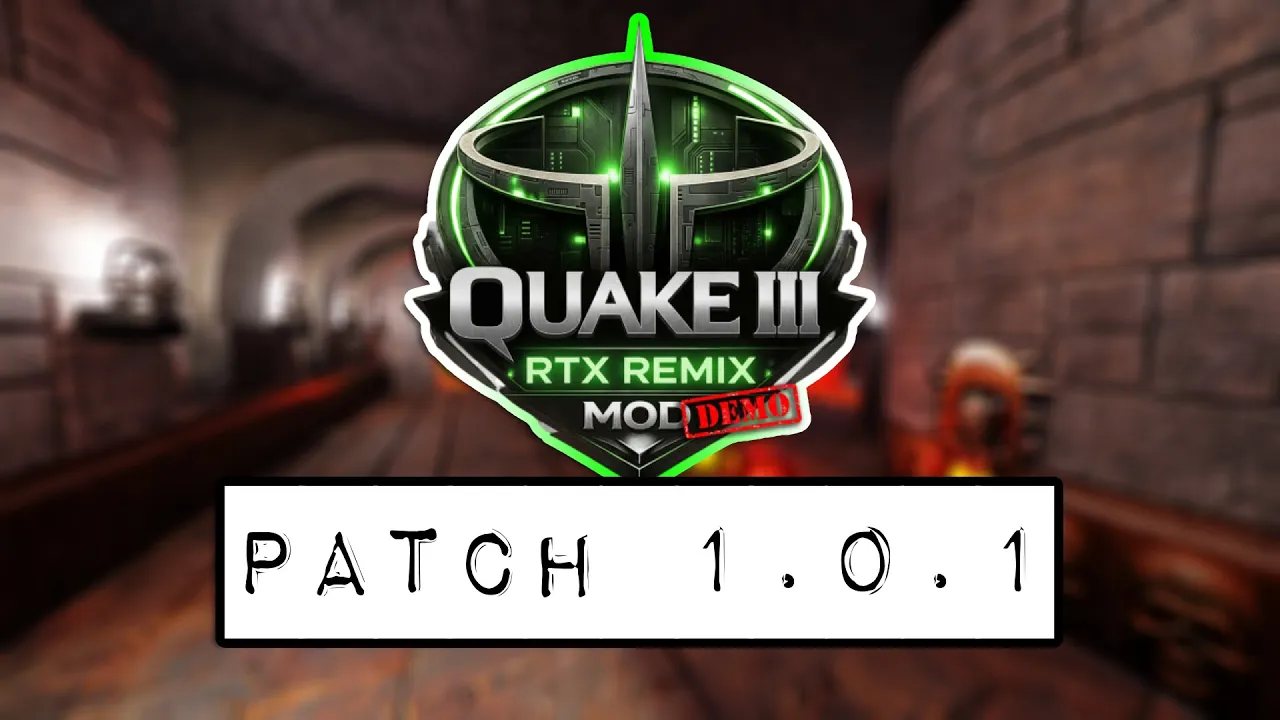 Unofficial Quake 3 RTX mod released by woodboy90 on ModDB. It builds on RTX Remix 1.2.4 and uses Quake3e, imgupscaler.ai, and Photopea. Visual quality is mixed; some lighting looks off.